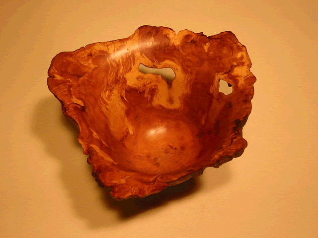 | Name | RootBowl | Description | The shape , colour , contrast ,flame grain and spalting on this well proportioned bowl are unique. | Material | Wild Cherry - English. Turned from a root stump that had remained in the earth for about 6 months | Max Height | 16cm. | Max Diameter | 27cm. | Price | On Request |
